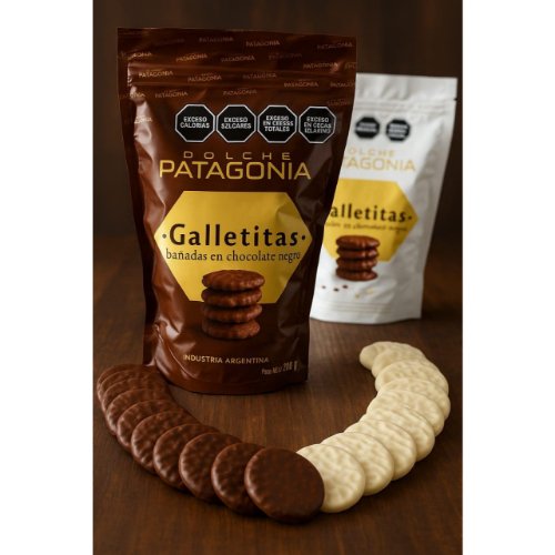 Las galletitas DOLCHE Patagonia vienen en un práctico doy pack de 200 g, ideal para abrir y picar en cualquier momento. Vas a encontrar galletitas blancas sabor miel y galletitas negras sabor almendras, bañadas en chocolate negro o combinadas con chocolate blanco según el pack que elijas.
